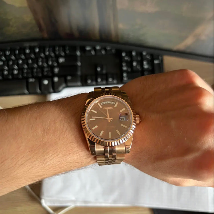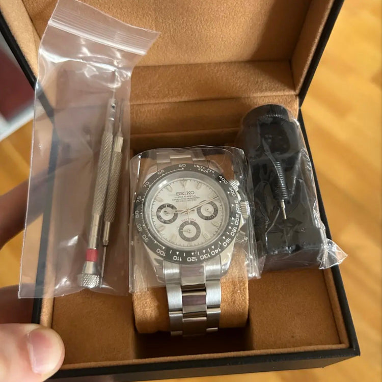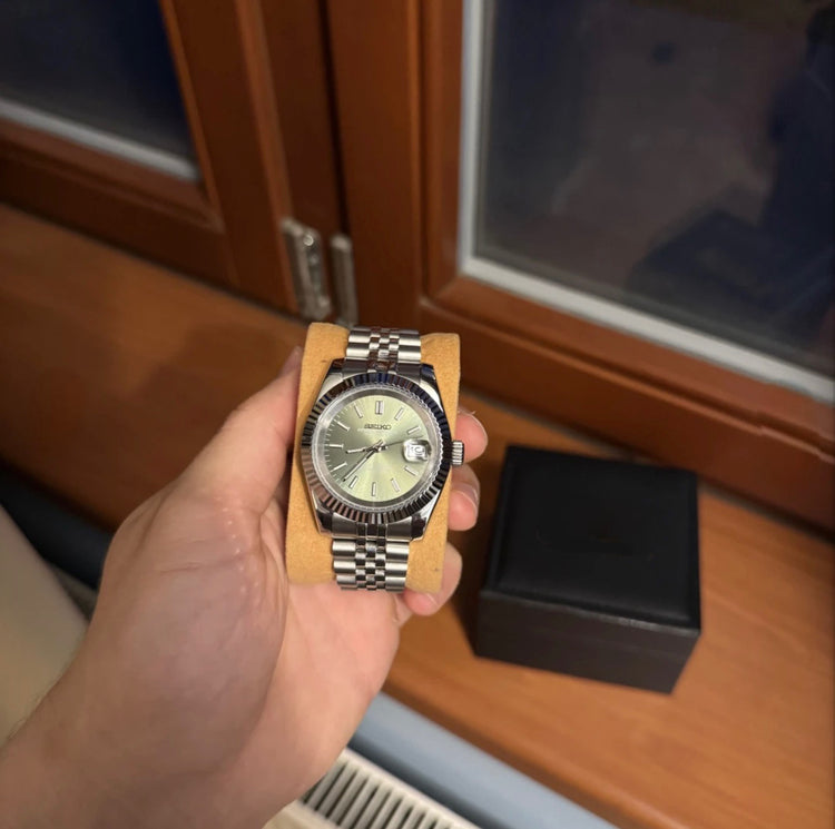 A Seiko Mod is a special watch hand-assembled from a prestigious Seiko automatic or hybrid movement, combined with high-quality aftermarket parts, usually made of 904L stainless steel.